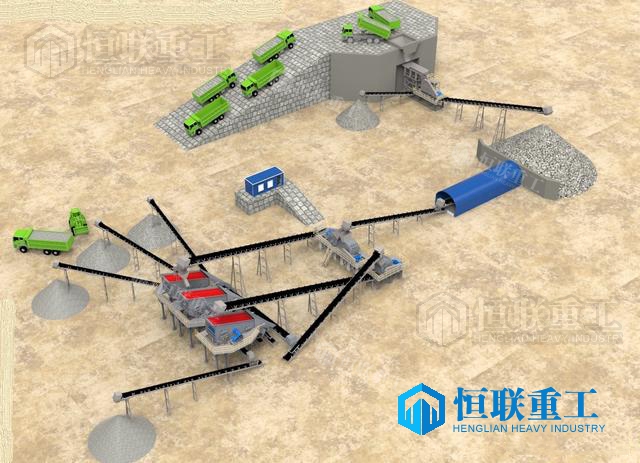 注意事项;鄂破出来的物料需要经过中转库,以保证后续生产连续稳定,建议中转库要储存3000方物料,生产线主机搭建完毕还要为关键的环保处理,干法生产的话全封装负压除尘,湿法生产的话,全部喷淋加污水处理系统,以保证环保达标。