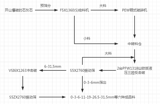 主机设备:PEW颚式破碎机、2台PFW反击破碎机、VSI6Xbbin宝盈
