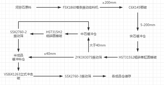 主机设备:C6X颚式破碎机、HST液压圆锥破、VSI6Xbbin宝盈等